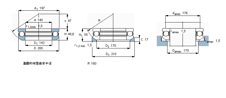 | 推力球軸承, 單向,帶球面軸承座墊圈 | ||||||||||||