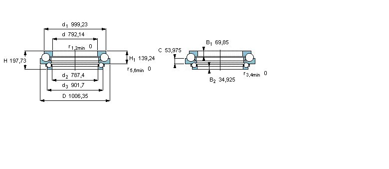 | 角接觸推力球軸承, 雙向 | |||||||||||
