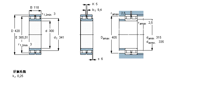 | 圓柱滾子軸承, 雙列滿裝滾子, 無密封件, 沒有載荷支承能力 | ||||||||||